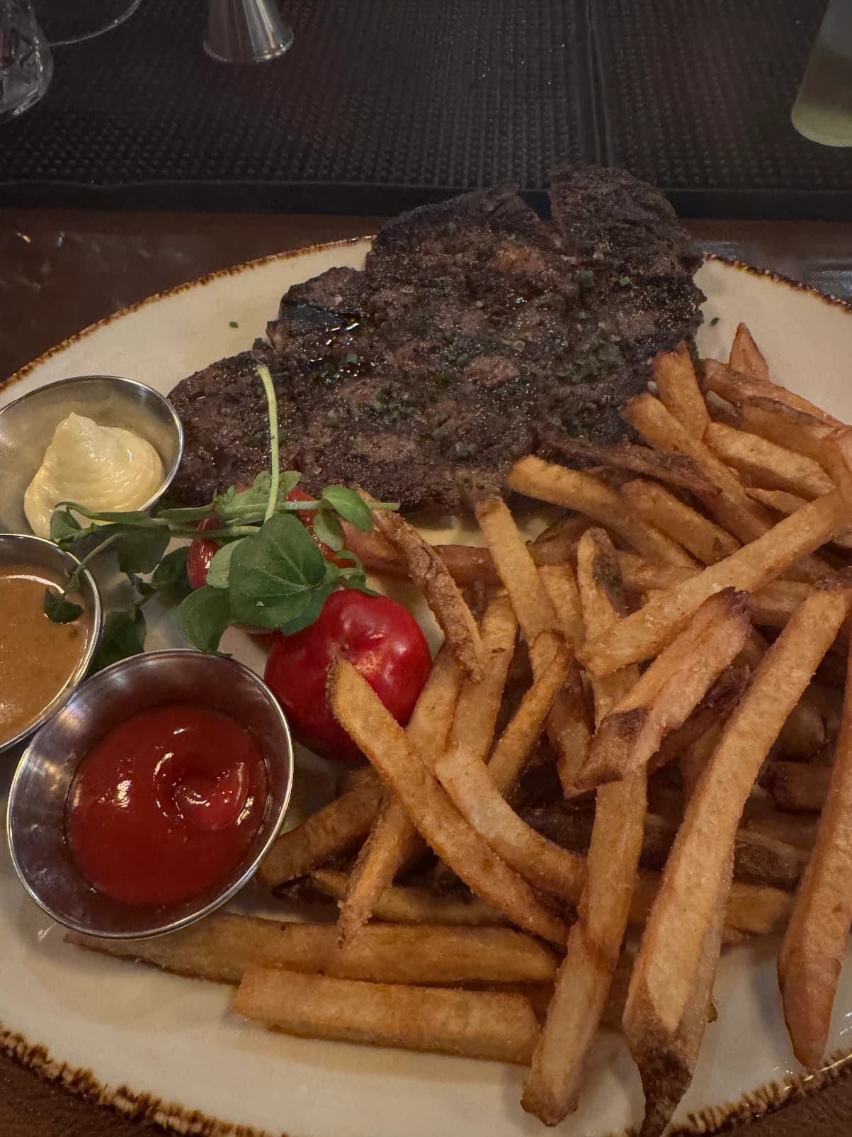 Ribeye, au poivre, beef tallow fries, garlic aioli